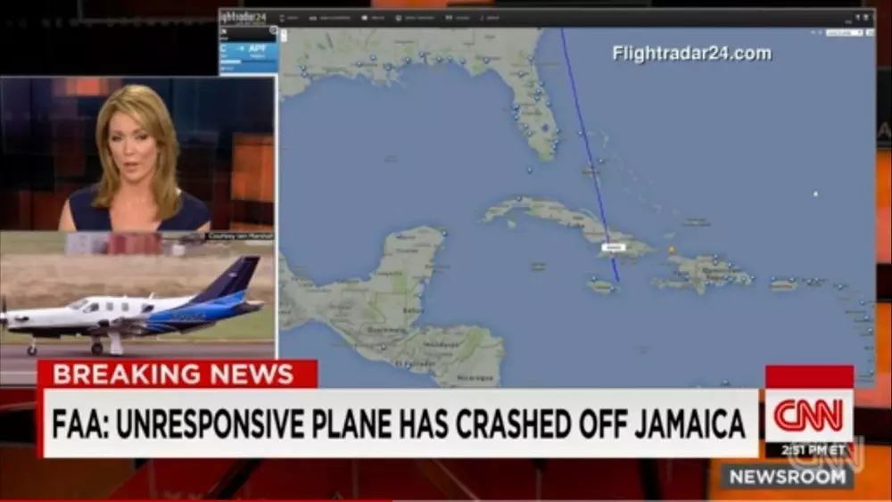 Частный американский одномоторный самолет Socata TBM-700, пилот которого перестал выходить на связь, был перехвачен истребителями ВВС США и рухнул у берегов Ямайки, сообщает CNN.