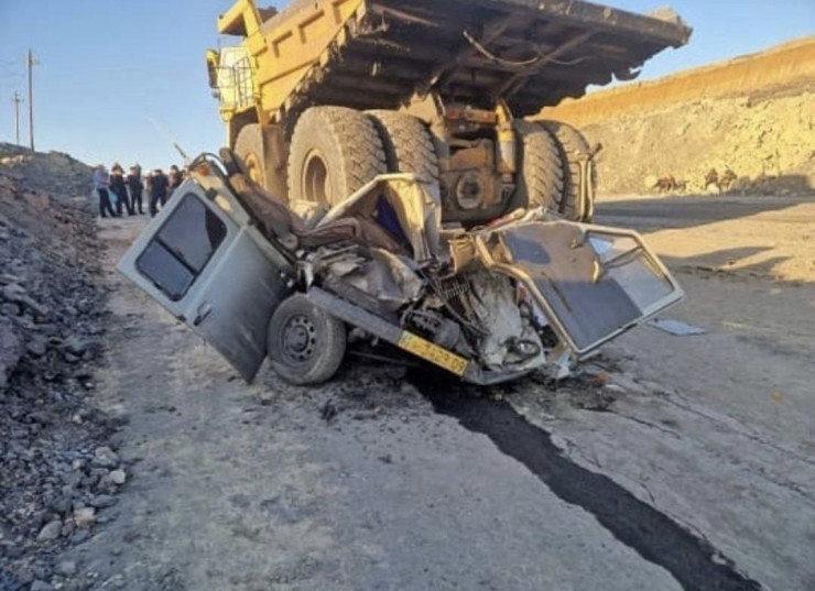 "28 августа на разрезе "Молодежный" водитель автомашины БелАЗ, по предварительным данным, при совершении поворота допустил наезд левой частью на автомашину УАЗ . В результате наезда водитель автомашины УАЗ и его пассажир от полученных травм скончались на месте, еще три пассажира этой машины доставлены в медицинское учреждение", - сообщили в ДП.