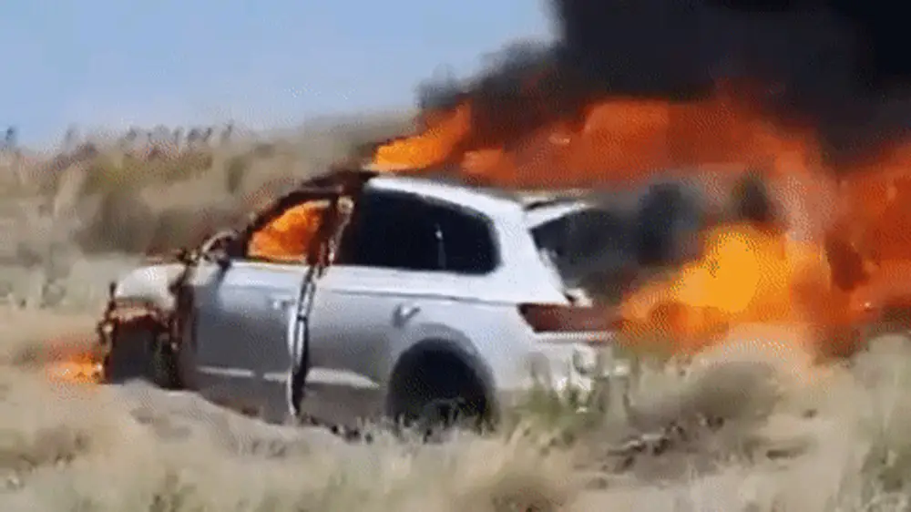 Момент пожара владельцу авто удалось снять на видео. Позже ролик появился на странице 100baksoff в Instagram. На кадрах видно, как на берегу озера горит машина. Огонь охватил весь автомобиль. Голос за кадром сообщает, что Volkswagen Touareg 2019 года выпуска горит на берегу Балхаша.
