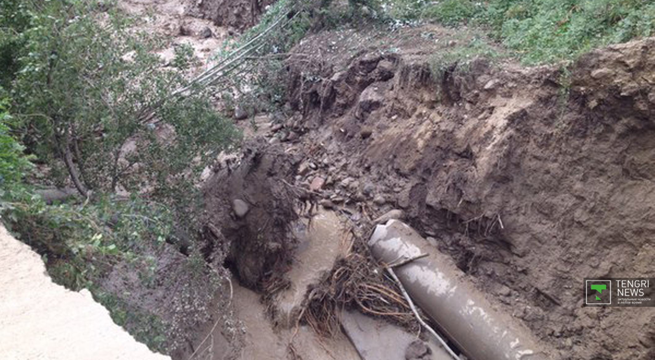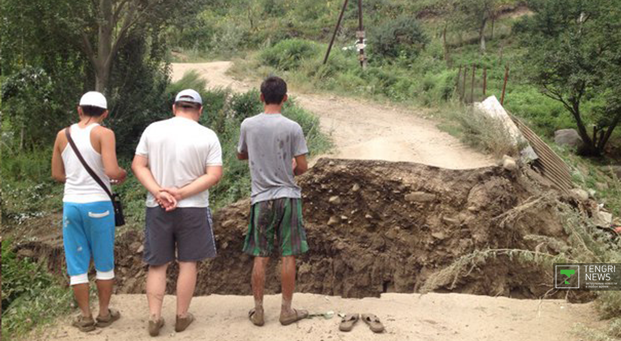 11:40. Публикуем свежие фотографии с места событий. На них видно, как прошедший сель размыл дороги.