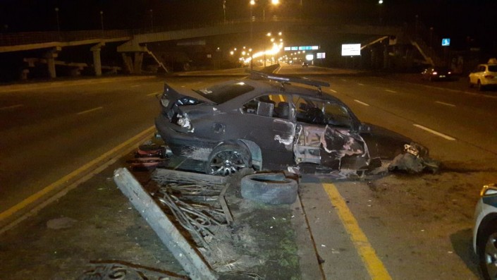 ДТП произошло на Восточной объездной дороге (ВОАД), перед Кульджинским трактом. Как рассказал водитель BMW, он двигался в северном направлении в среднем ряду. Впереди ехавшая автомашина Honda внезапно затормозила, после чего, в попытке уйти от столкновения с ней, он "ушел" влево. Водитель не справился с управлением и снес четыре секции металлического ограждения.