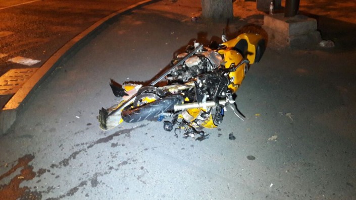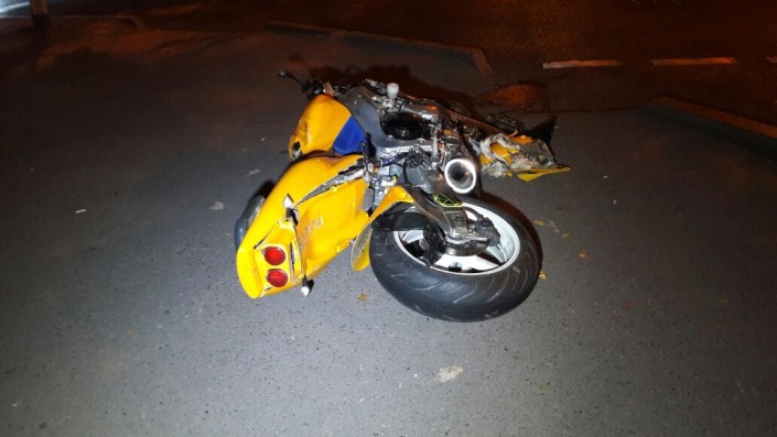 Судя по фото с места происшествия, мотоцикл в результате столкновения разорвало пополам. Японский автомобиль при этом получил большую вмятину в боку.