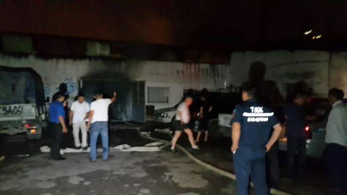 ДЧС Алматы со ссылкой на данные очевидца сообщает, что инцидент произошел в 23.38 по времени Астаны. "Первые пожарные расчеты прибыли на место вызова уже через пять минут в 23.43. К прибытию пожарных расчетов складывалась следующая информация: открытым пламенем горела кровля СТО, создалась угроза перехода огня на соседнее здание. Силы и средства прибывали на пожар по повышенному номеру. В ходе тушения пожара эвакуирован автомобиль с горящего бокса СТО", - прокомментировала официальный представитель ДЧС Алматы Сандугаш Баймухамбетова.