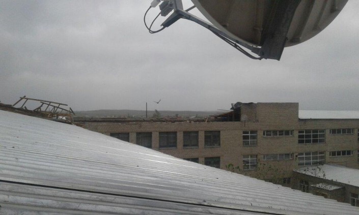 В Аягозе пострадало здание городской многопрофильной школы-гимназии - площадь срыва кровли составила 450 квадратных метров. Также сильный ветер сорвал крышу школы-гимназии № 10.