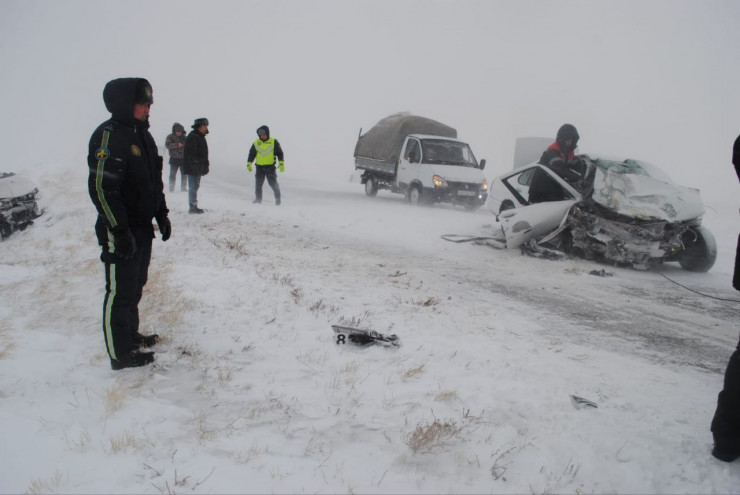 "Здесь произошло столкновение с автомашиной Nissan, затем столкновение еще трех автомобилей", - сообщил исполняющий обязанности начальника Управления полиции Аркалыка Талгат Балгожин.