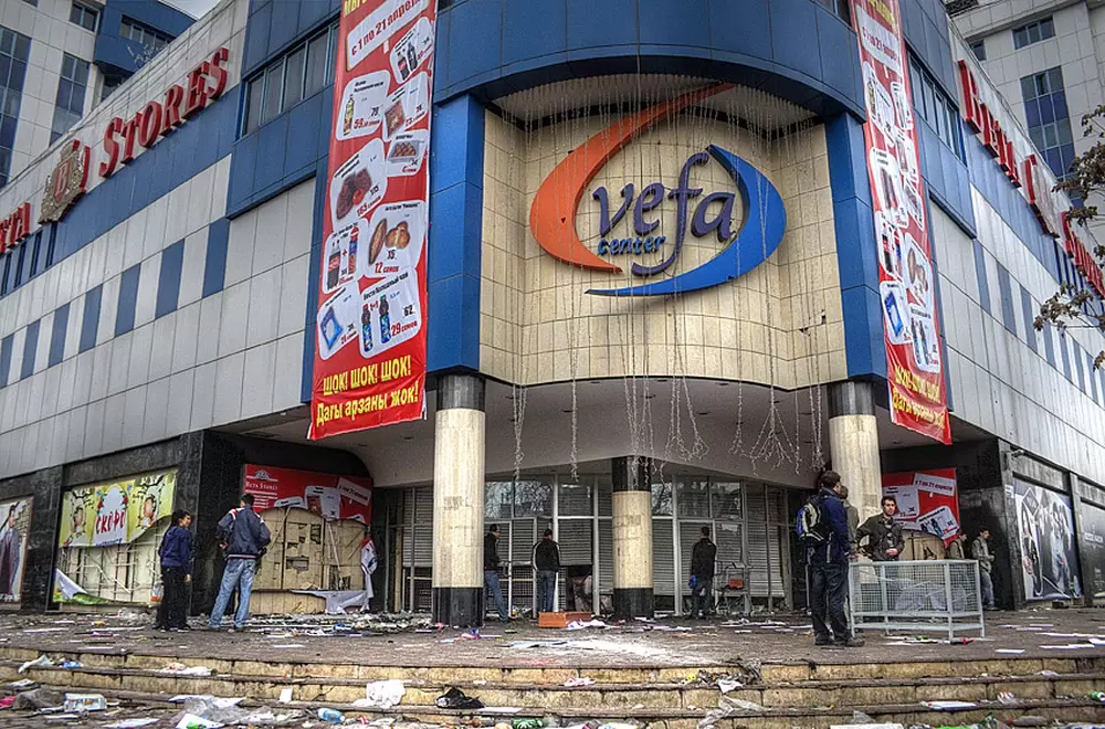 Эвакуация сотен людей началась после того, как в милицию столицы Кыргызстана поступило сообщение о заложенной бомбе в здании торгового центра Vefa.