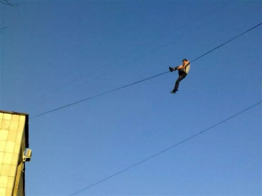Житель Усть-Каменогорска по проводам пытался попасть в соседний многоэтажный дом, передает корреспондент Tengrinews.kz со ссылкой на пресс-службу ДЧС ВКО.