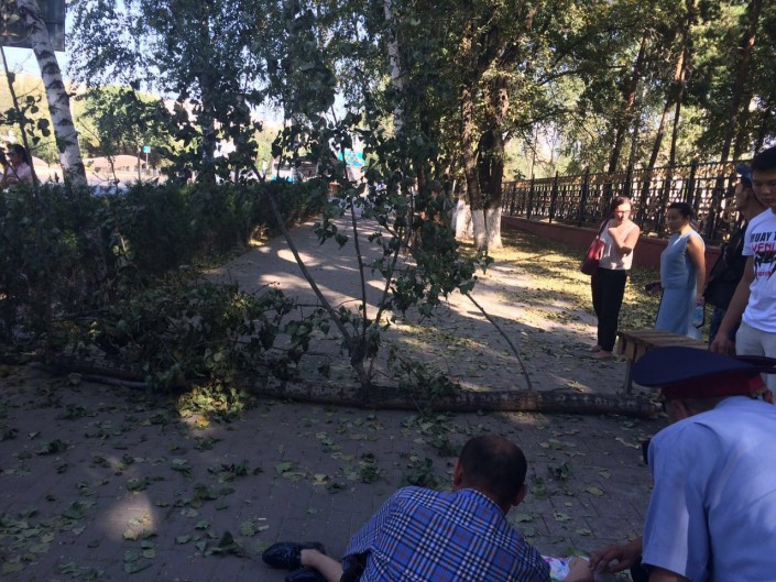 На студентку КазНУ упало дерево: Пострадавшая в тяжелом состоянии