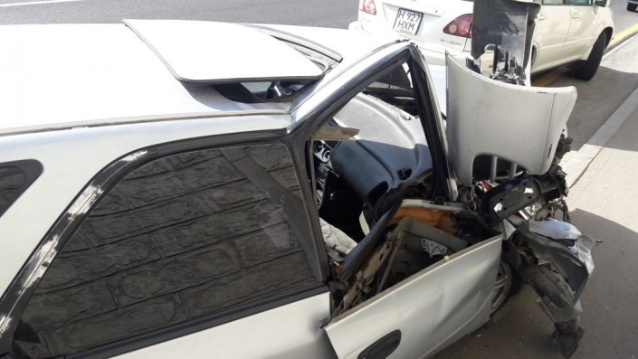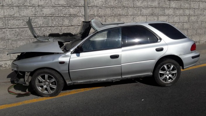 Мусоровоз следовал по правой стороне, медленно собирая отходы, когда в него на полном ходу врезалась автомашина Subaru.