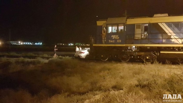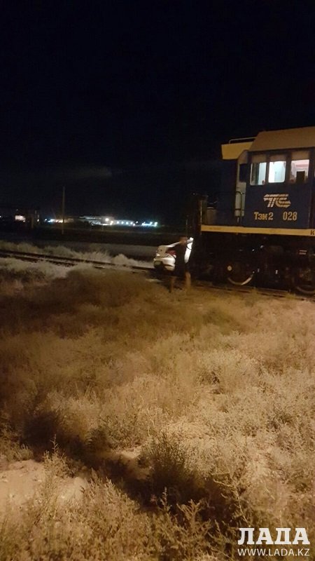 Тепловоз столкнулся с автомобилем в пригороде Актау, сообщает Lada.kz.