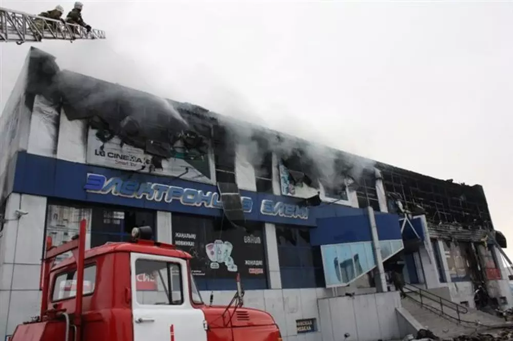 В Караганде в субботу сгорело двухэтажное здание крупного торгового дома, специализирующегося на продаже бытовой техники - "Планета электроники", передает "Интерфакс-Казахстан".
