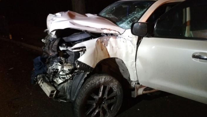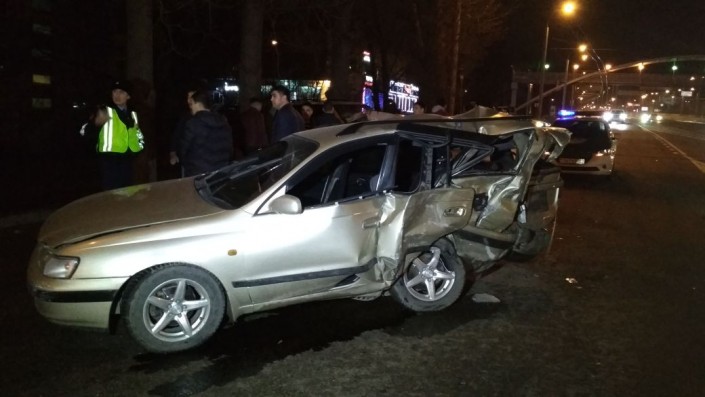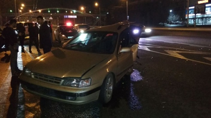 Toyota Land Cruiser жестко въехал в легковушку в Алматы