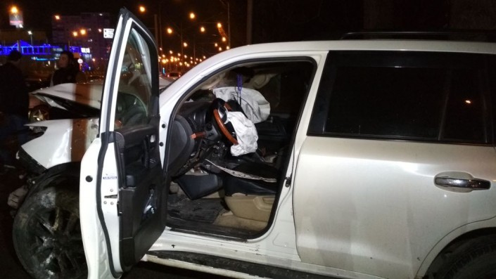 Инцидент произошел в ночь с 11 на 12 марта на пересечении улиц Саина и Кима. По словам водителя внедорожника, он двигался по Саина в северном направлении и решил перестроиться в крайний правый ряд. Мужчина утверждает, что в этот момент с улицы Кима резко выехала Toyota Caldina. По словам водителя Land Cruiser, он не успел вовремя затормозить и предотвратить столкновение.