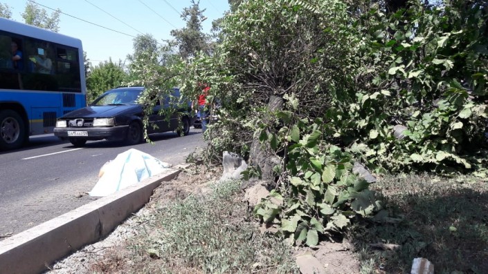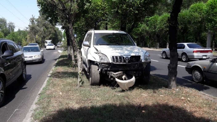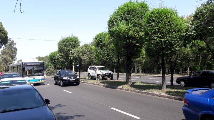 Получив удар сзади, внедорожник сдвинулся с места и сбил женщину, после чего перелетел через газон и остановился после столкновения с деревом. В результате ДТП переходившая дорогу по пешеходному переходу 76-летняя женщина от полученных травм скончалась на месте.