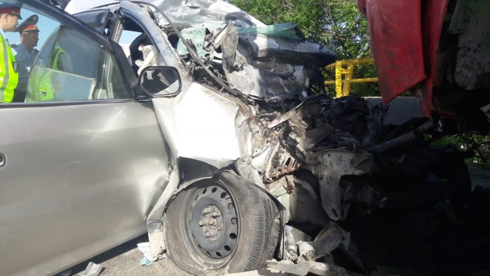 Toyota влетела в грузовик в Алматы: скончалась девушка
