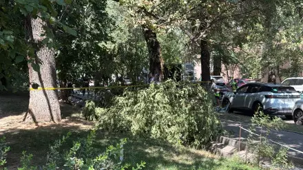 Человек погиб в результате падения ветки в Алматы. На месте работает полиция, передаёт корреспондент Tengrinews.kz.