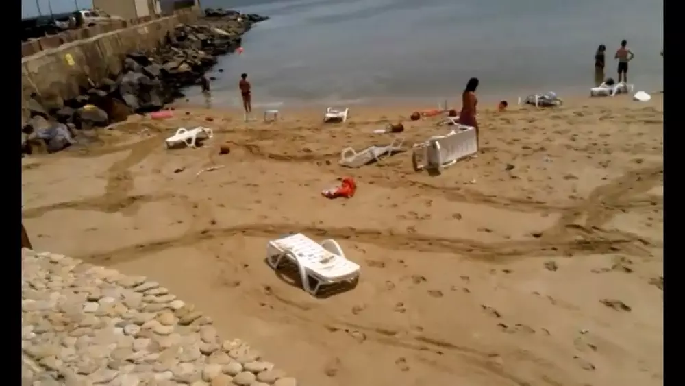 По словам очевидцев, они услышали хлопок со стороны воды, после чего на отдыхающих обрушилась огромная волна. В результате в воде оказались 15 человек, они выбрались на берег. Волна смыла вещи отдыхающих и шезлонги.
