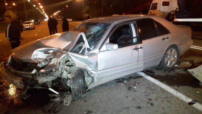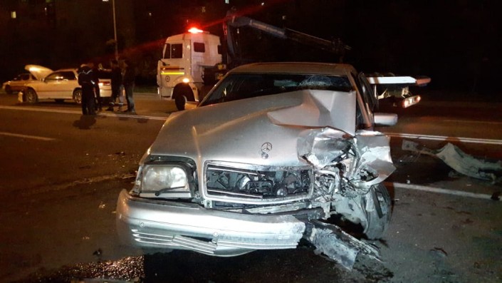 ДТП произошло на улице Момышулы, напротив "Алматы Арена". Со слов очевидцев, автомашина Mercedes-Benz двигалась в северном направлении и по невыясненным причинам выехала на полосу встречного движения, где столкнулась с Volkswagen. От удара Mercedes-Benz отлетел на сзади идущую Toyota.