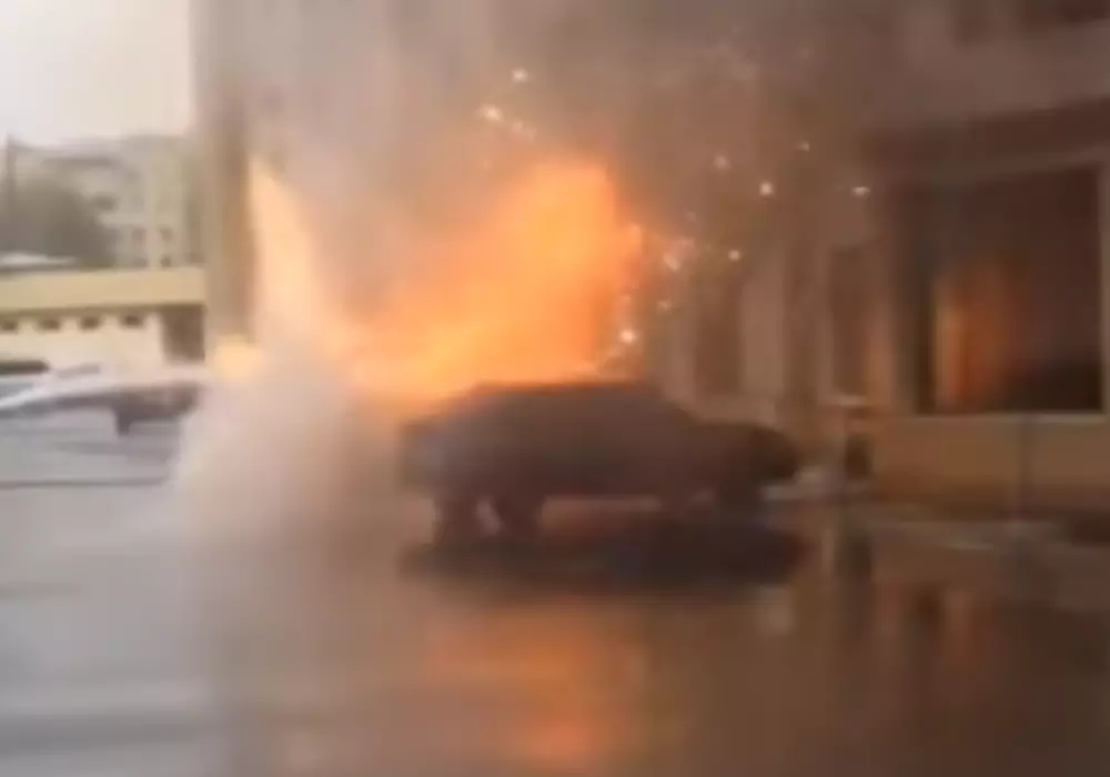 У Центрального стадиона в Шымкенте полностью сгорел BMW X5 Скриншот с видео youtube.com