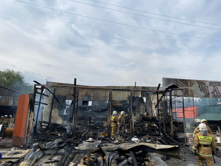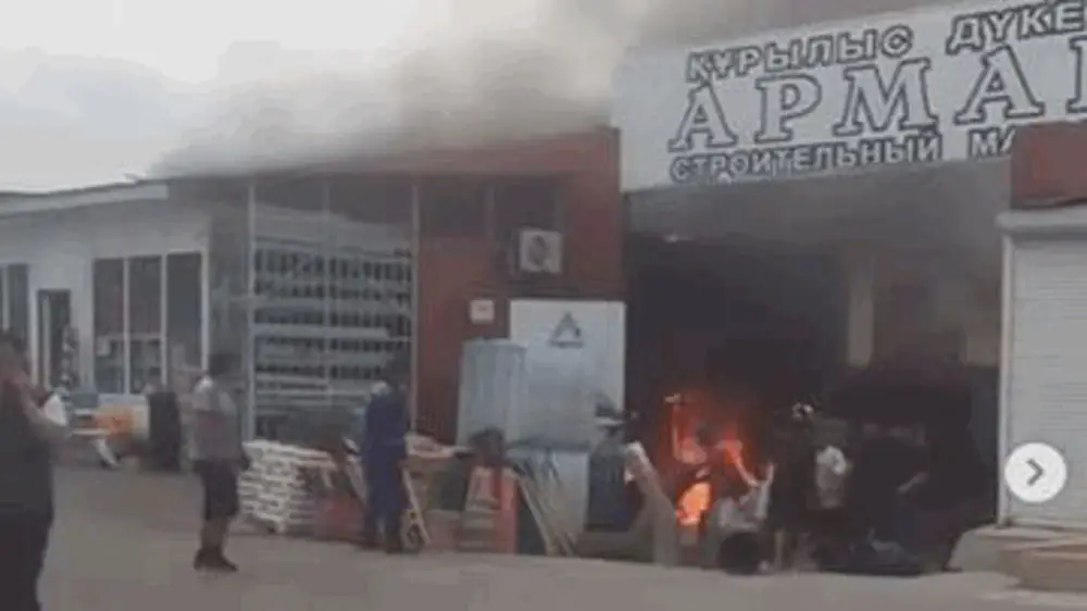 Инцидент произошел на строительном рынке "Арман" в микрорайоне Кайрат. В соцсетях распространяются кадры, на котором мужчина призывает других очевидцев не применять меры по тушению огня.