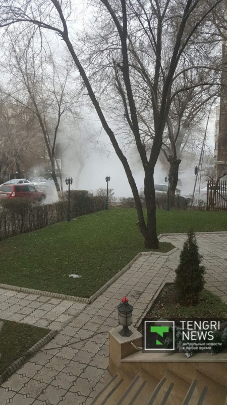 В Алматы прорвало трубу с горячей водой, передает корреспондент Tengrinews.kz.