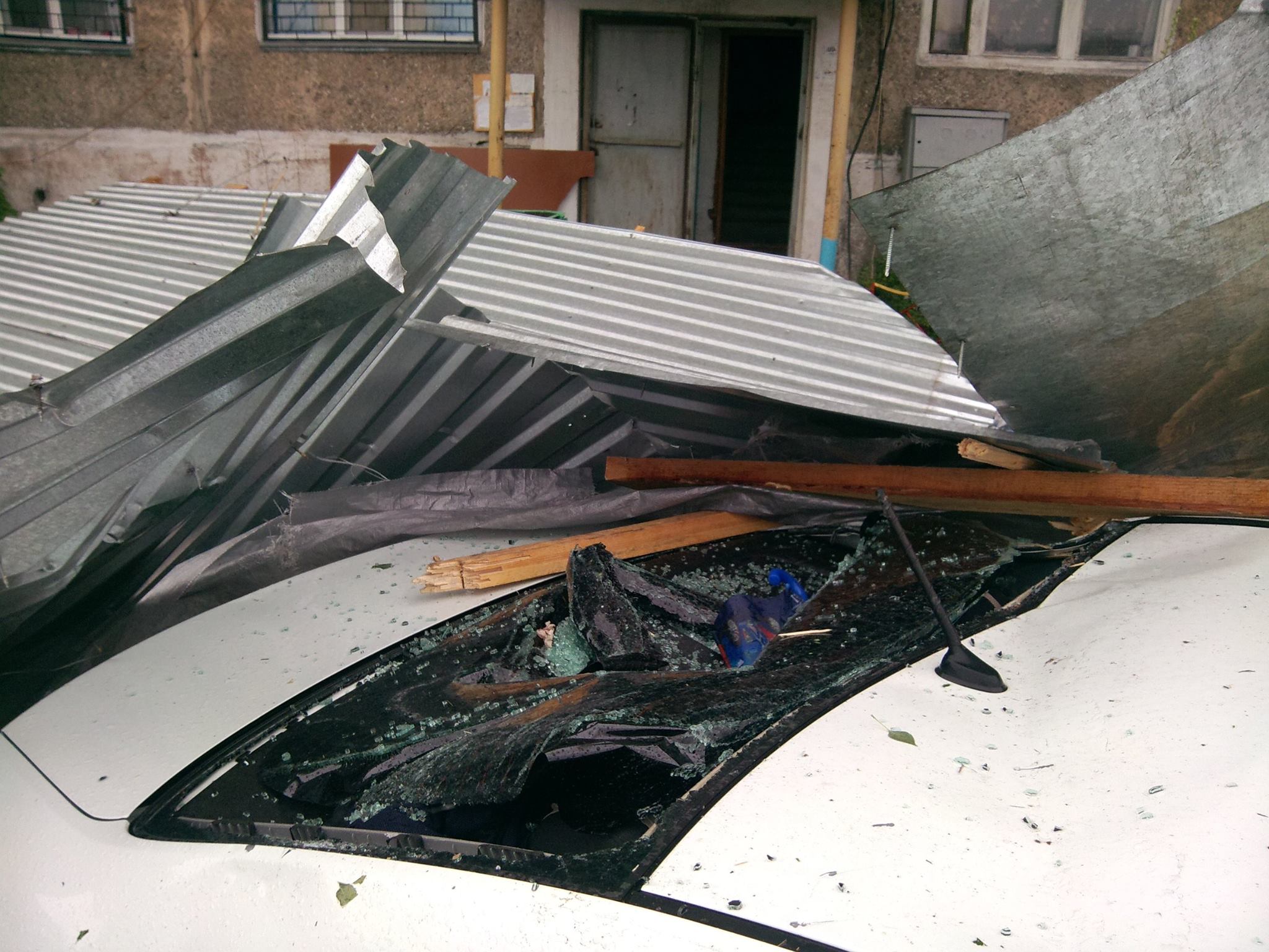 В ведомстве отметили, что в последний раз кровля пострадавшего дома ремонтировалась в 2012 году по программе "Модернизация". Очевидцы рассказали, что в городе повреждены кровли рынка "Нарык", сорваны рекламные вывески, повалено более десятка деревьев. Одно из деревьев придавило рядом стоящее авто.