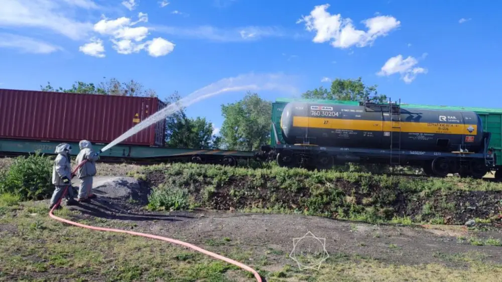 "Спасатели провели заблаговременную эвакуацию 46 сельчан из местных домов. Были проведены работы по охлаждению вагона-цистерны", - говорится в сообщении ведомства (текст изменен по просьбе пресс-службы ДЧС по области Жетысу).