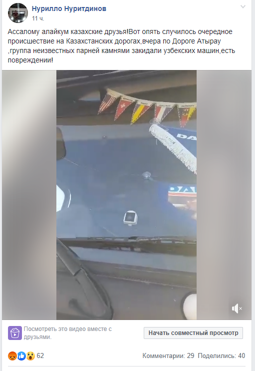Неизвестные закидали камнями большегрузы из Узбекистана, вероятно, направлявшиеся в Атырау. Об этом сообщил в группе ОО "ОСА" в Facebook пользователь Нурилло Нуритдинов, передает Tengrinews.kz.