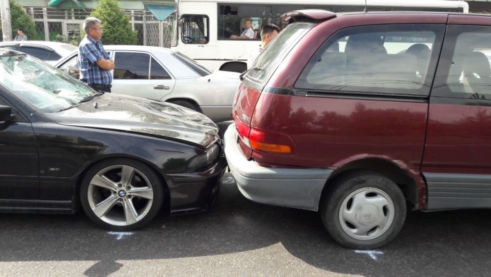 Совершив наезд, по информации очевидцев, BMW начал скрываться с места происшествия и, не доезжая до улицы Момышулы, врезался в Toyota Previa.