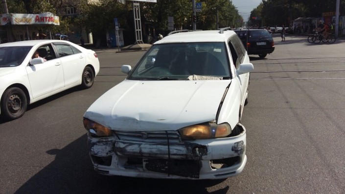 Авария произошла на пересечении улиц Толе би и Ауэзова. Как рассказали очевидцы, автомобиль Subaru двигался по улице Ауэзова, он выехал на перекресток на разрешающий сигнал светофора. В этот момент по улице Толе би на красный свет проехал автомобиль Mitsubishi, который по касательной задел Subaru.