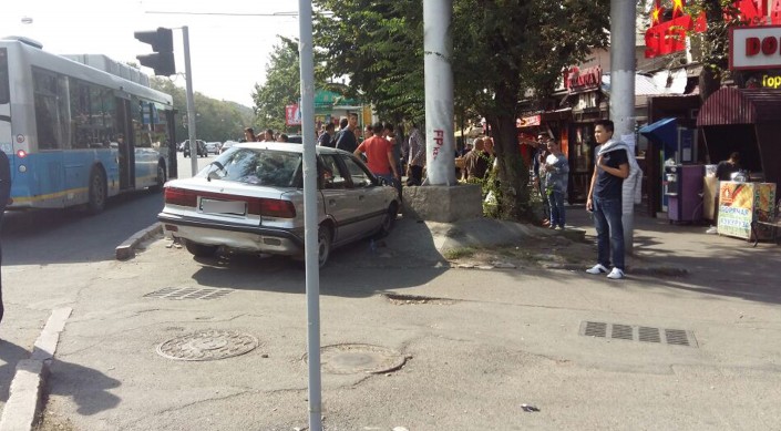 В Алматы автомобиль в ходе ДТП вылетел на тротуар и сбил там двоих человек, сообщает корреспондент Tengrinews.kz с места происшествия.