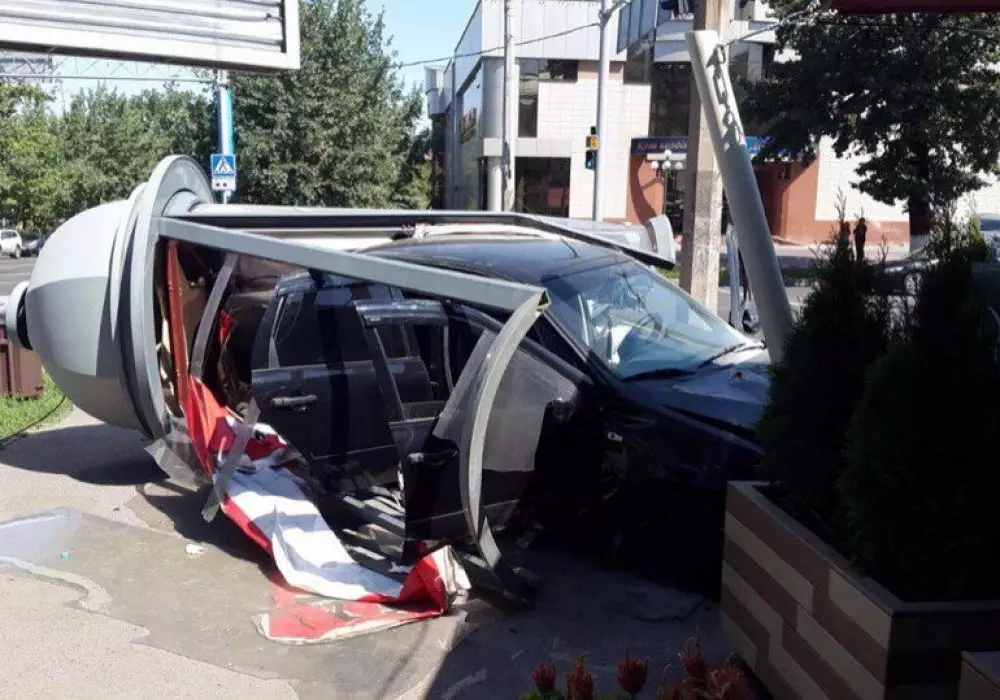 В Алматы автомобиль снес рекламную тумбу в результате ДТП Фото ©Территория происшествий