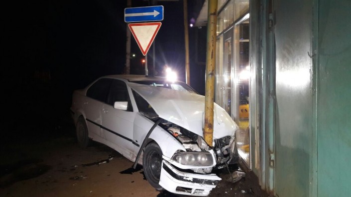 В результате столкновения обе машины откинуло к витрине строительно магазина. Honda разбила витрину, а BMW врезалась в столб. В ДТП пострадал водитель BMW, его госпитализировали в больницу.