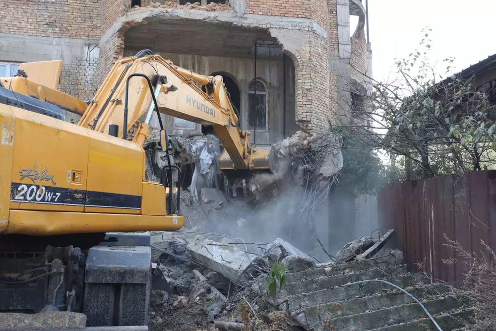 В Алматы сносят незаконно построенный на речке трехэтажный дом, передает корреспондент Tengrinews.kz.