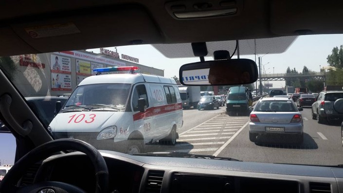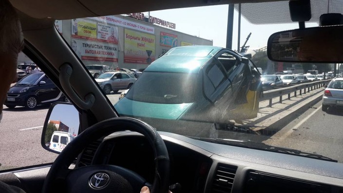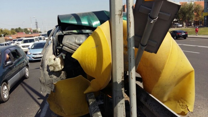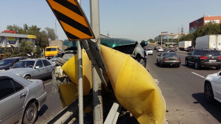 Со слов очевидцев, водитель автомашины выскочил на полосу встречного движения. В результате чего он на полном ходу влетел в разделительный отбойник. Сообщается, что водитель автомобиля был госпитализирован.