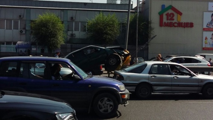 В Алматы произошло ДТП с участием автомобиля марки BMW, передает корреспондент программы "Территория происшествий" на телеканале СТВ. Автомобиль двигался по проспекту Райымбека в западном направлении.