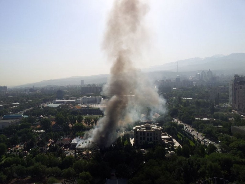 Площадь пожара пока неизвестна. Между тем в городской службе спасения агентству "ИФ-Казахстан" уточнили, что горят склады на территории парка. Жертв и пострадавших нет.