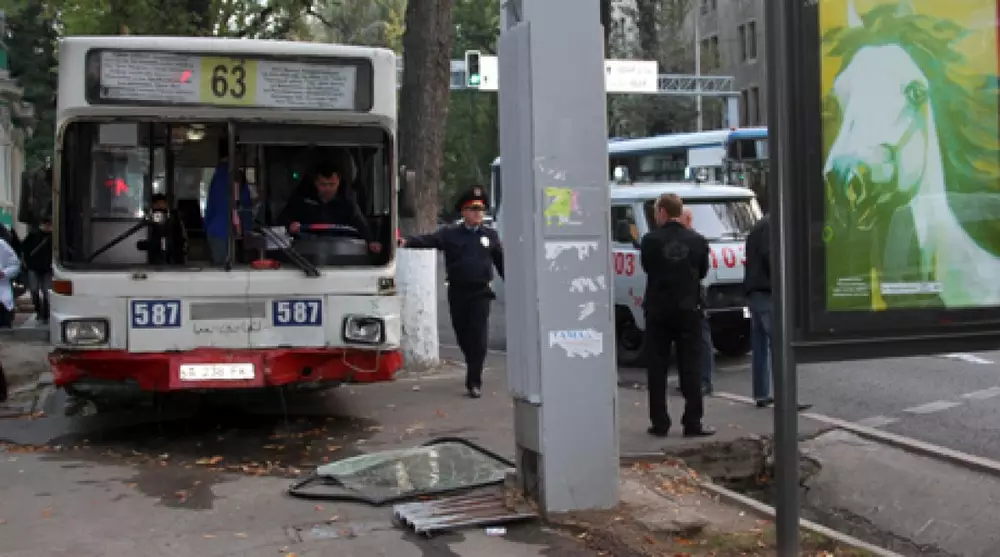 В центре Алматы столкнулись внедорожник и автобус Автобус, который врезался во внедорожник.Фото ©Алишер Ахметов