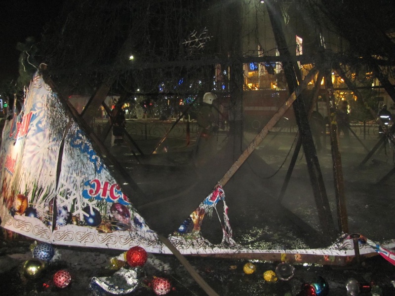 В центре Тараза сгорела новогодняя елка Фото ДЧС Жамбылской области