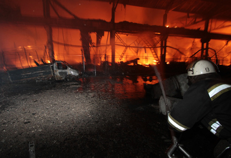Сигнал о возгорании поступило в 8.27 часов по местному времени (2.27 часов по Москве). Пожар, охвативший 700 квадратных метров, был ликвидирован через 3,5 часа. По словам очевидцев, здание сервисного центра сгорело полностью.
