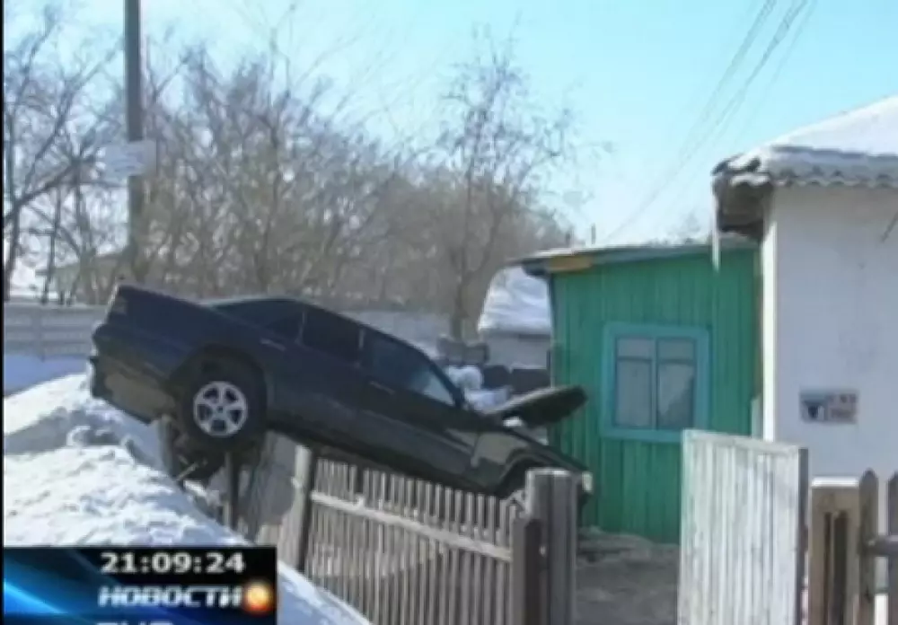 Курьезное ДТП произошло в Караганде. Водителя легкового автомобиля занесло на крутом повороте, после чего машина повисла на заборе, сообщает КТК. Как рассказал водитель, он буквально на мгновение задремал за рулем, а когда очнулся, его машина висела на металлической трубе, которая подпирает забор. Сам водитель не пострадал. Чтобы снять машину с забора, владельцу пришлось вызывать дополнительную технику. От удара также покосилась пристройка рядом стоящего дома.