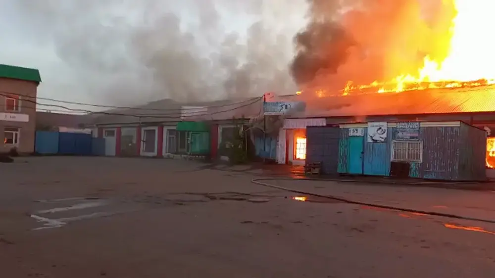 Пожар произошел сегодня под утро. В 04:50 в Щучинске Акмолинской области произошел пожар в одноэтажном отдельно стоящем здании рынка "Жомарт". На тушение пожара незамедлительно направили 97 огнеборцов.