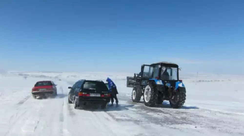 "В Северо-Казахстанской области 25 ноября в 13.40 поступило сообщение, что в Айыртауском районе в 15 километрах от села Арыкбалык на трассе Арыкбалык-Саумаколь остались в снежном заносе пять автомашин и 10 человек (из них двое детей)", - говорится в распространенном сообщении.