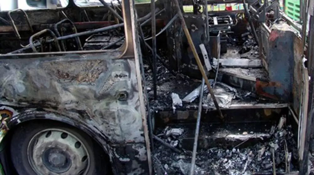 В Шымкенте столкнулись автобус и легковой автомобиль, сообщает корреспондент Tengrinews.kz в Южно-Казахстанской области. В результате Mitsubishi Galant и автобус марки ПАЗ сгорели дотла. Водитель легкового автомобиля в тяжелом состоянии был доставлен в больницу, водитель автобуса, получив травмы средней тяжести, от госпитализации отказался. В автобусе пассажиров не было. По словам водителя автобуса, легковое авто "влетело в топливный бак автобуса", однако кто виноват в аварии, он ответить не смог. Помимо этого, сегодня, 19 апреля, на дороге, ведущей на алматинскую трассу в районе зоопарка столкнулись две машины. Произошел взрыв, сообщили в УДП города.
