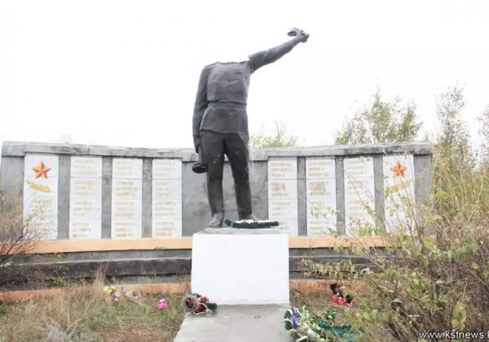 Вандалы оторвали голову у памятника Воину-освободителю в поселке Заречный в Костанайской области, сообщают "Костанайские новости".