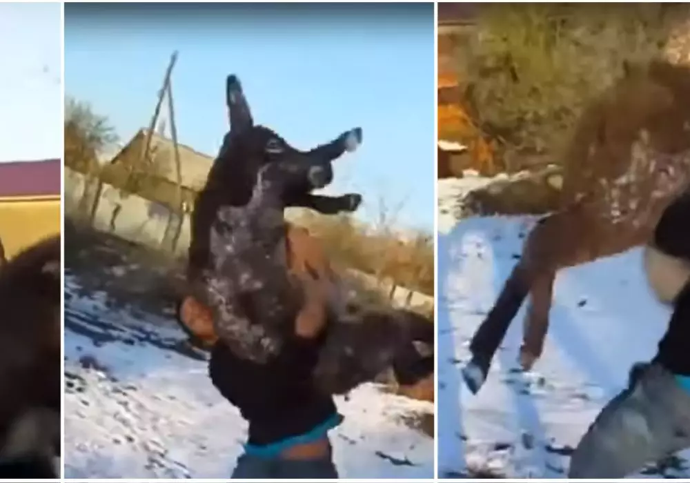 На кадрах видно, как мужчина несколько раз поднимает и навзничь бросает животное на землю. Оператор комментируют происходящее, говоря о том, что это своего рода "казакша курес". Короткий видеоролик быстро разошелся в Сети по различным социальным сетям. Пользователи активно комментируют видео и осуждают парня, жестоко обращавшегося с животным.