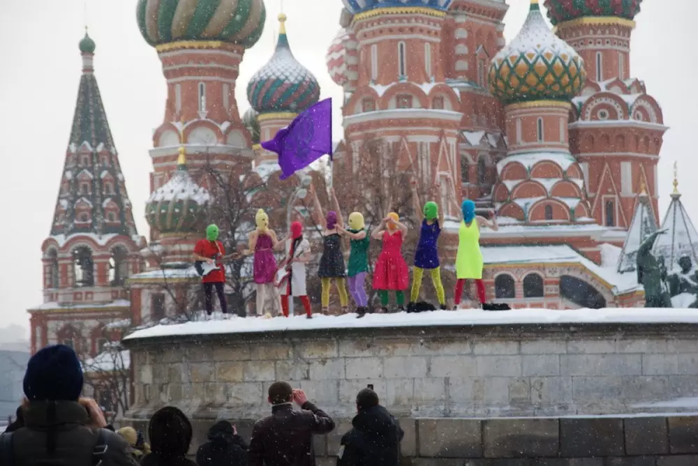 На Красной площади в Москве задержаны восемь участниц радикальной музыкально-феминистской группы Pussy Riot. Полуголые девушки с масками на лице взобрались на Лобное место напротив Кремля и исполнили нецензурную песню про Путина под названием "Путин зассал". Об этом сообщается в блоге панк-группы в "Живом Журнале". Вот здесь можно посмотреть видеоролик с места событий и прочитать текст песни. Солистки Pussy Riot призывают россиян добиваться политических перемен в стране. "Будьте смелее. В это горячее и возбуждающее время, когда политический режим в России пошатнулся, а лицом ушедшего года объявлен Protester, в коллективном действии объединились и анархисты, и феминистки, и ЛГБТ, а также либералы, Мадонна с младенцем и все святые", - пишут участницы группы на своем сайте.