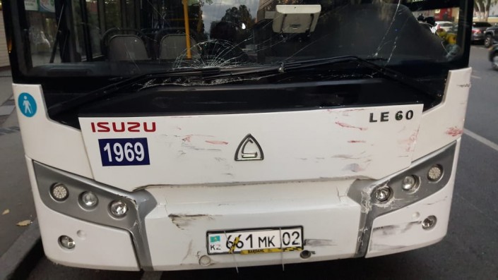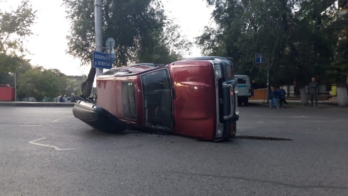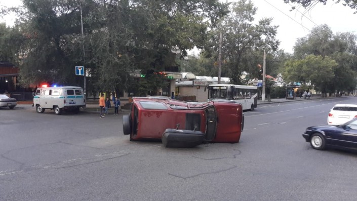 Внедорожник перевернулся после столкновения с автобусом в Алматы