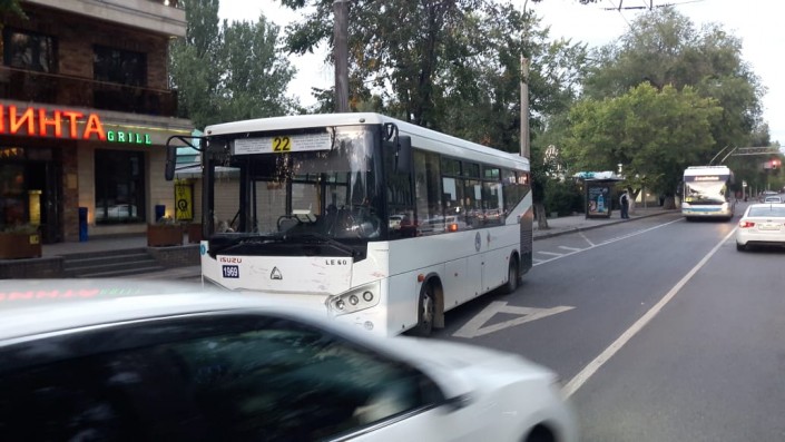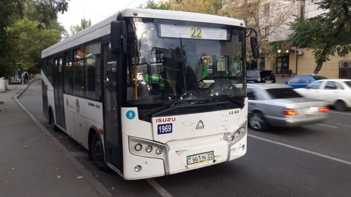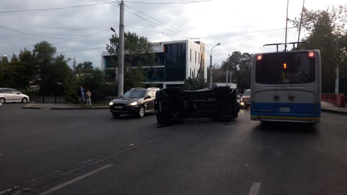 ДТП произошло на пересечении улиц Гоголя и Кожамкулова. Со слов очевидцев, якобы автомашина Toyota Surf двигалась в южном направлении по Кожамкулова, в этот момент по автобусной полосе ехал автобус 22-го маршрута. Водитель Toyota якобы не заметил его и выскочил на Гоголя. В результате столкновения Toyota Surf опрокинулась, пострадал водитель. Он был осмотрен бригадой скорой помощи, в госпитализации он не нуждался. Далее выяснением всех обстоятельств занимается полиция.