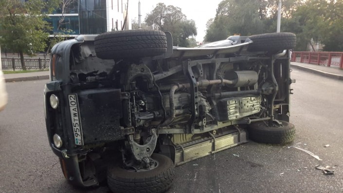 Внедорожник перевернулся после столкновения с автобусом в Алматы Фото "Территория происшествий".